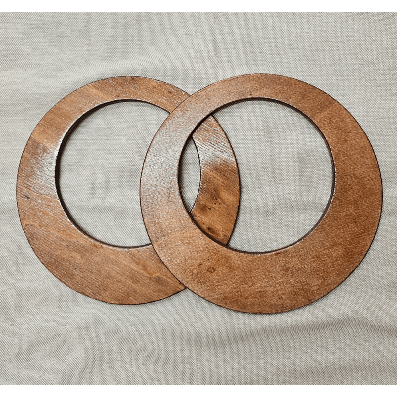 Pack de 2 asas circulares de madera oscura (18 cm). Resistentes y decorativas. Ideales para bolsos artesanales y proyectos DIY.