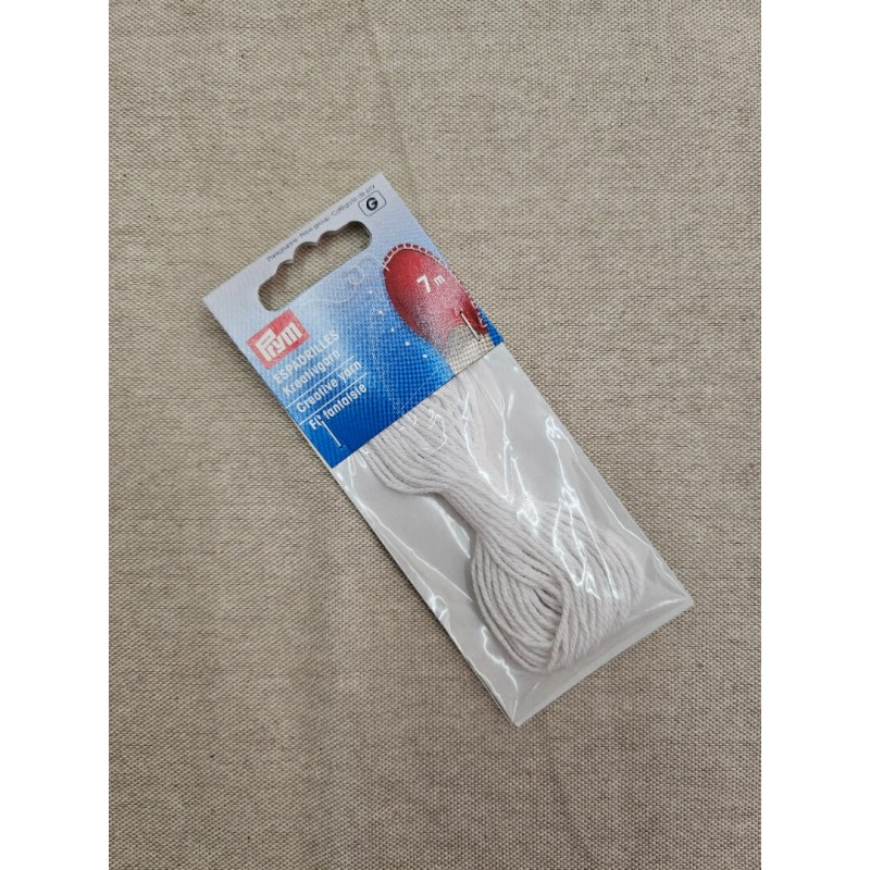 Hilo decorativo Prym blanco 100% algodón. Bobina de 7 m. Ideal para coser alpargatas y detalles visibles a mano.