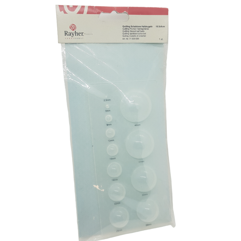 Regla de semiesferas de diferentes tamaños para rellenarlos de quilling. El tamaño es 18,5 cm x 9 cm.