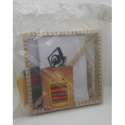 El kit esta compuesto por las telas, asas, telar y las instrucciones para llevarlo a cabo.