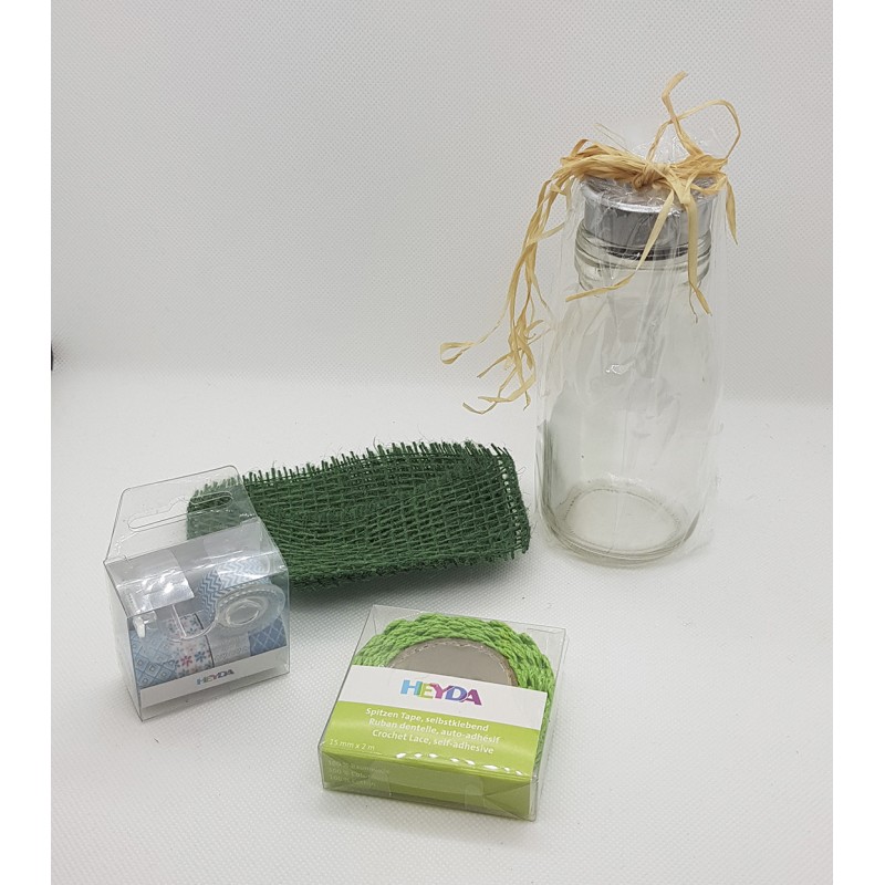 El kit esta compuesto por dos tipos de cintas y un celo decorativo.