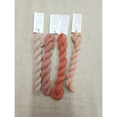 El pack “Tierra” reúne 4 preciosas lanitas en tonos naturales y cálidos, inspirados en la tierra, la arcilla y la naturaleza. Son lanas teñidas a mano por nosotros, con mucho mimo, en formato fino y en madejas de 30 metros cada una (aprox. 3,3 g por madeja).