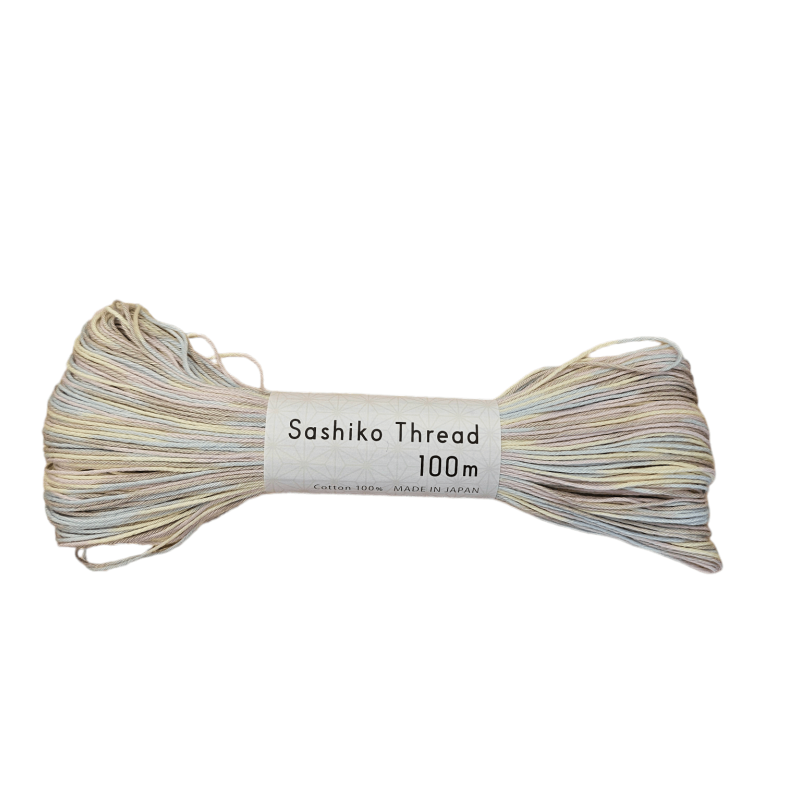 Madeja de hilo para sashiko en tonos crema, 100% algodón. La madeja son de 100m y vienen en colores multicolor y crudo.