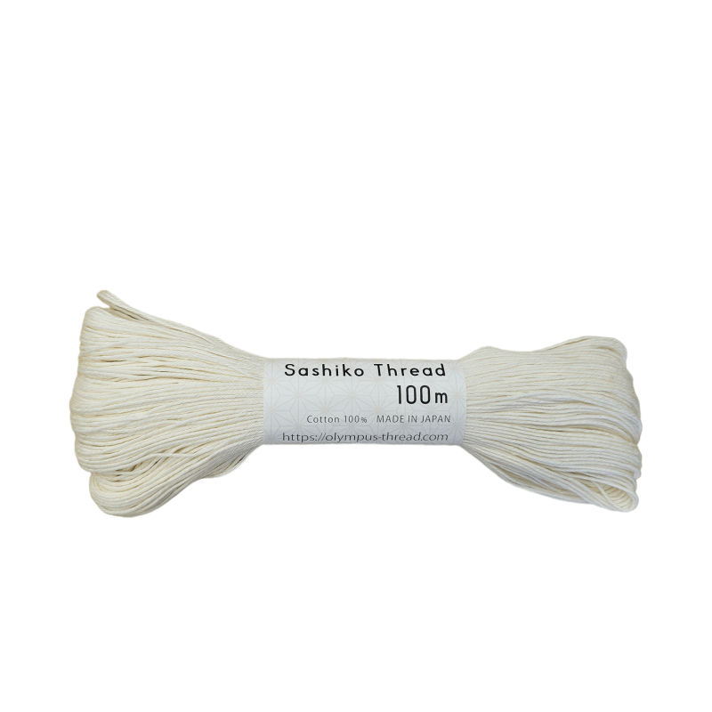 Madeja de hilo para sashiko en tonos crudo, 100% algodón. La madeja son de 100m y vienen en colores multicolor y crudo.